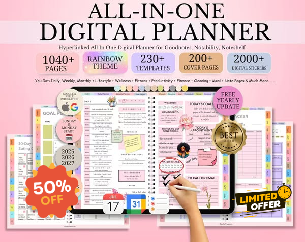 ✅ 2000+ Digital Stickers – Add fun and personality to every page.